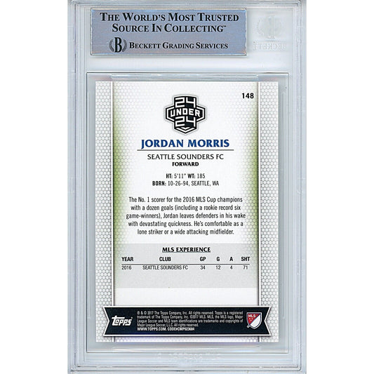 Jordan Morris Seattle Sounders Signed 2017 Topps MLS Soccer Card Beckett Auth Auto Slab