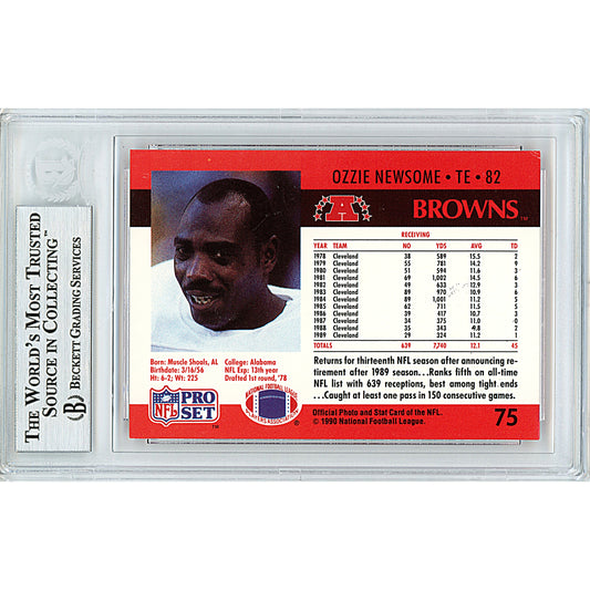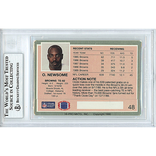 Ozzie Newsome Signed Cleveland Browns 1990 NFL Pro Set Football Card Beckett Slab