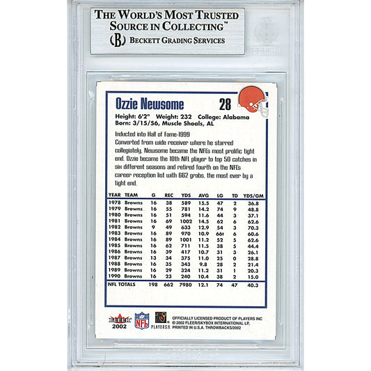 Ozzie Newsome Signed Cleveland Browns 2002 Fleer Throwbacks Football Card Beckett