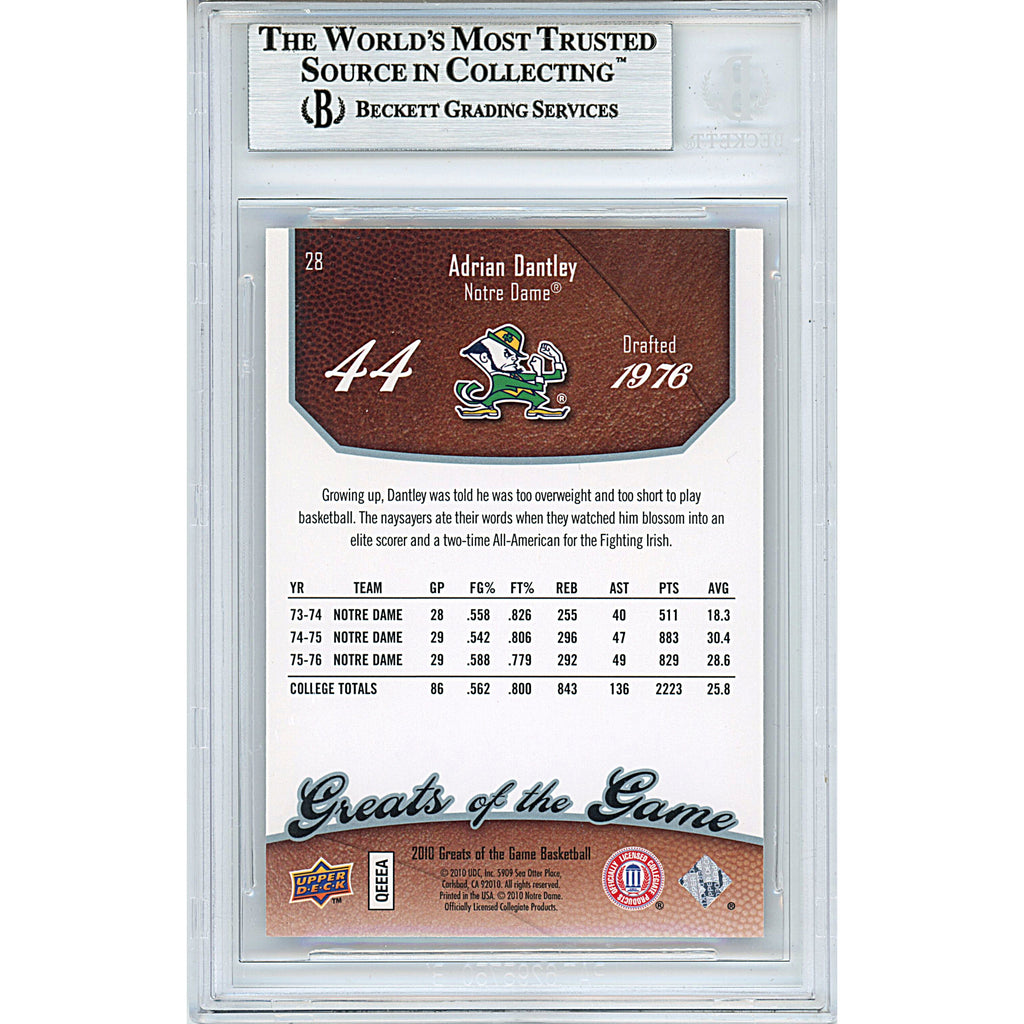 2009-10 Upper Deck Greats of the Game #4 — Adrian Dantley Notre Dame Autographed Trading Card — Beckett Authentication — authenticated by Beckett Authentication Services (BAS).