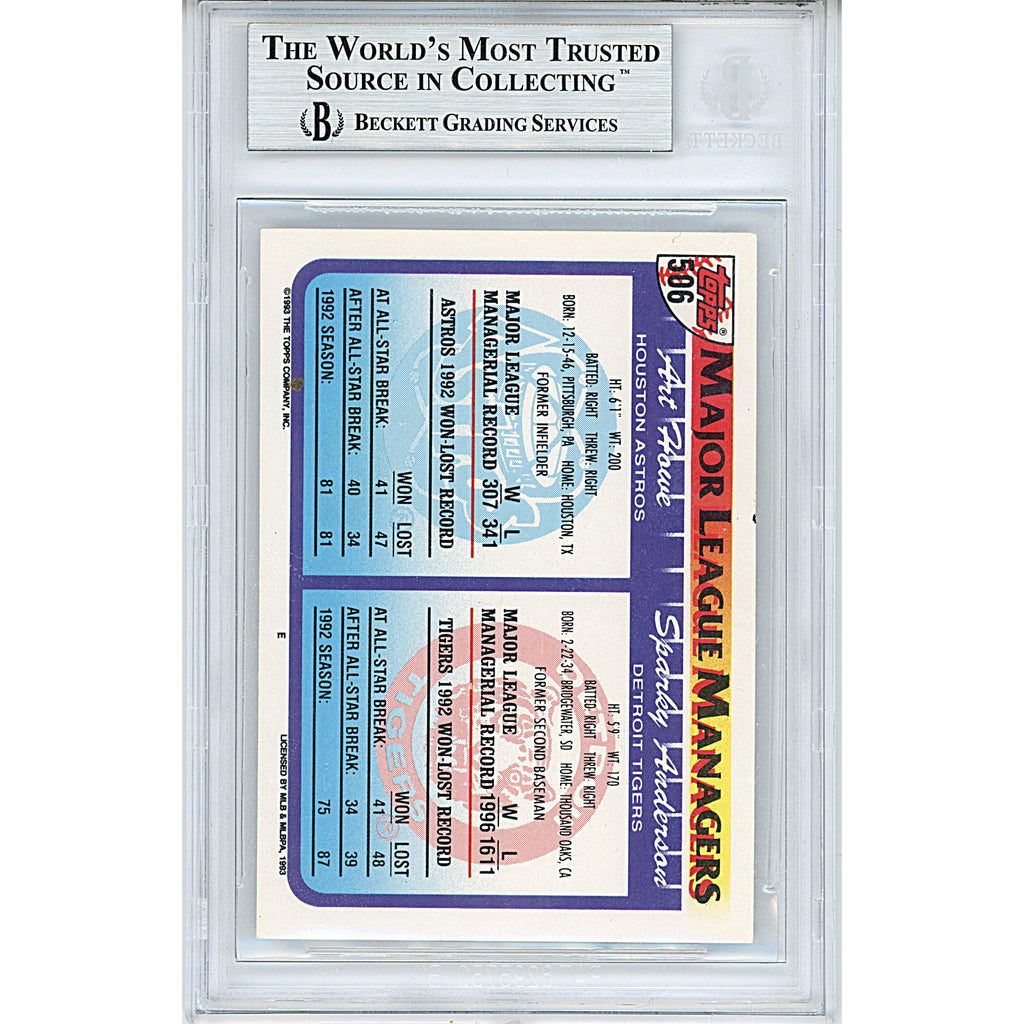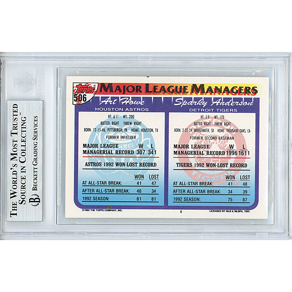 1993 Topps #506 — Art Howe And Sparky Anderson Autographed Trading Card — authenticated by Beckett Authentication Services (BAS).