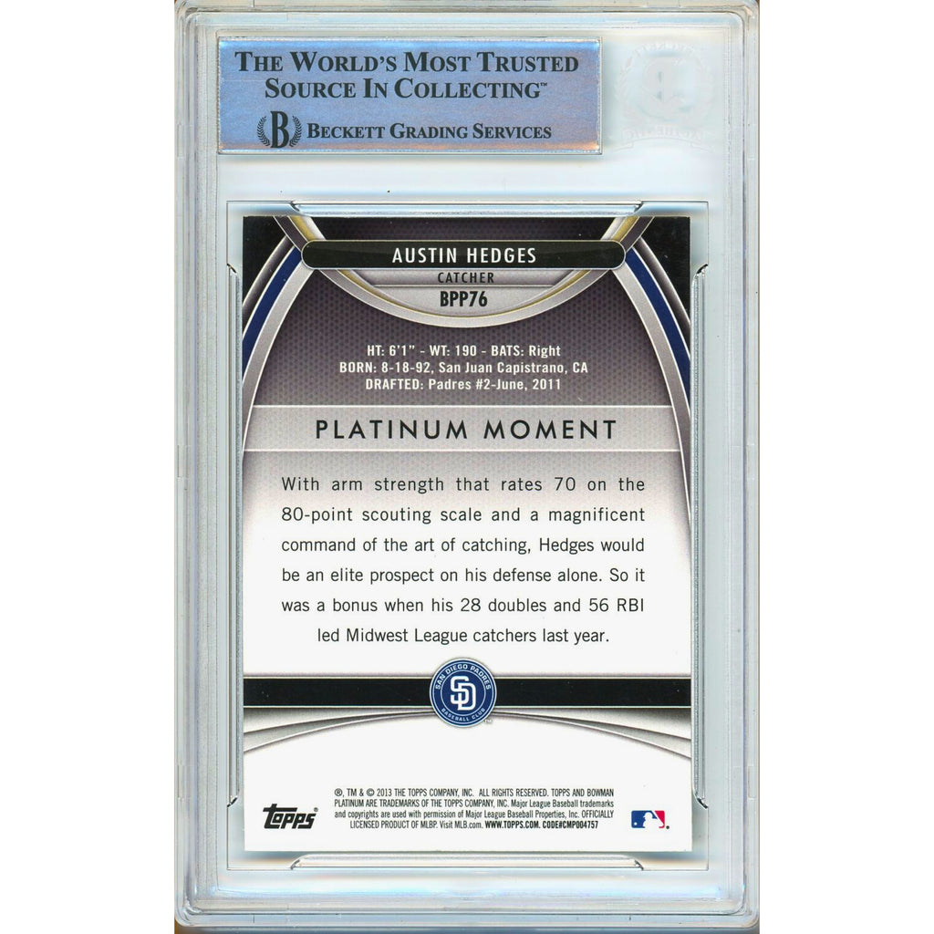 2013 Bowman Platinum Prospects #BPP76 — Austin Hedges San Diego Padres Autographed Trading Card — Beckett Authentication — authenticated by Beckett Authentication Services (BAS).
