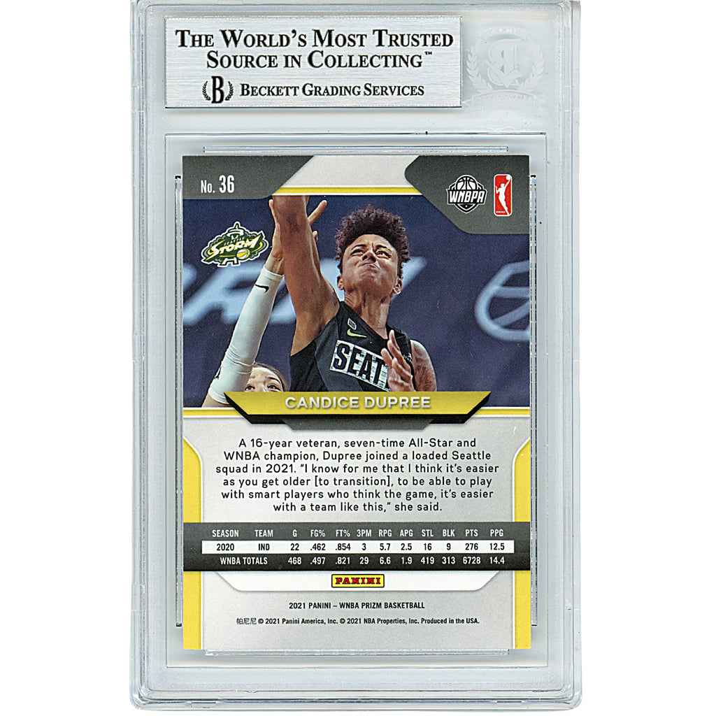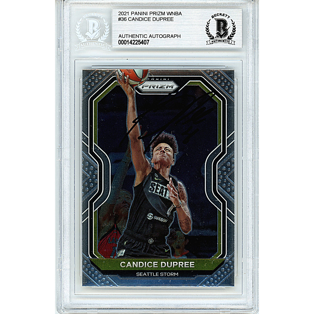 2021 Panini Prizm WNBA #36 — Candice Dupree Seattle Storm Autographed Trading Card — Beckett Authentication — authenticated by Beckett Authentication Services (BAS).