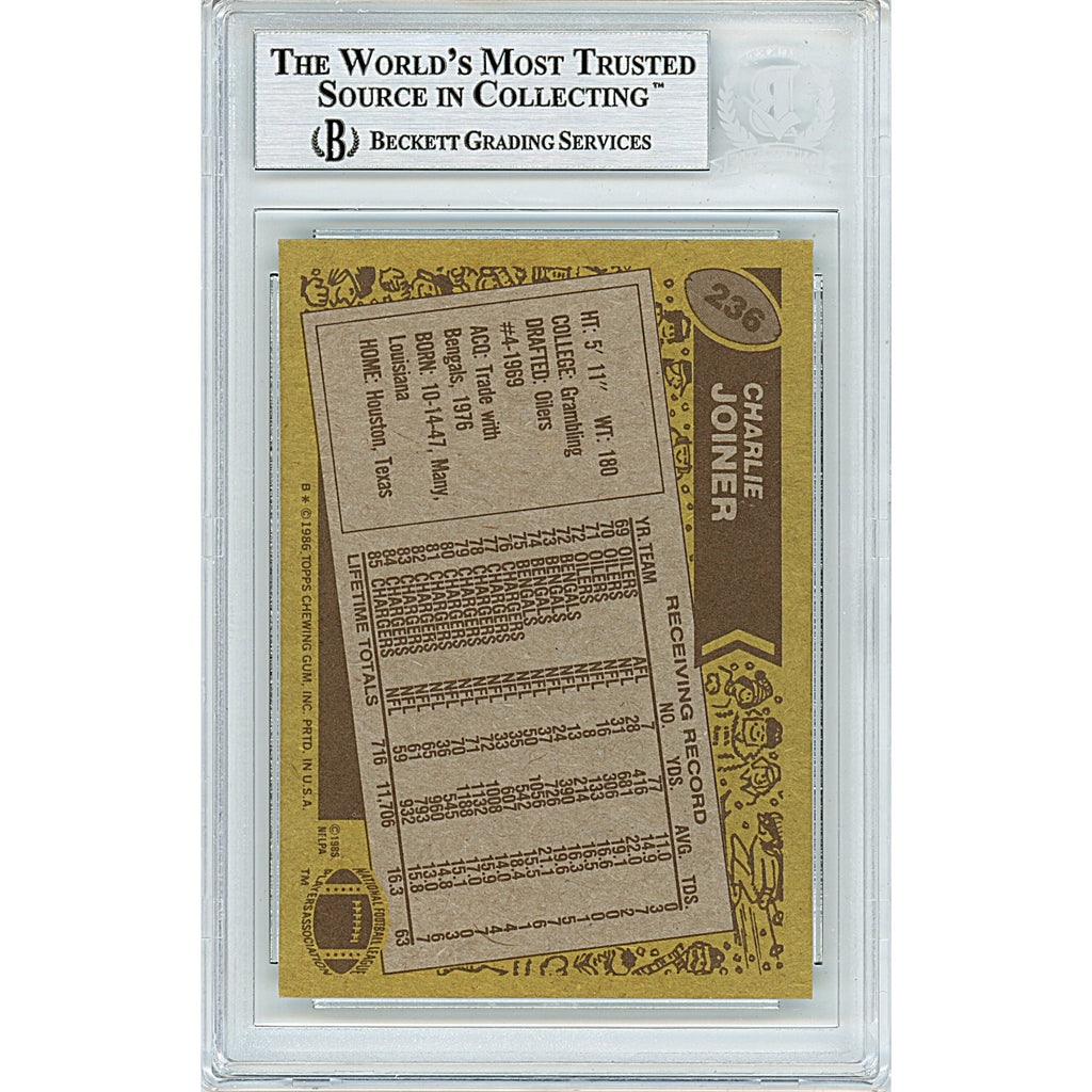 Offered here is an authentic Charlie Joiner signed trading card featuring Topps Football from 1986. The autograph is verified by Beckett Grading Services (BGS) (Cert #00014225862).