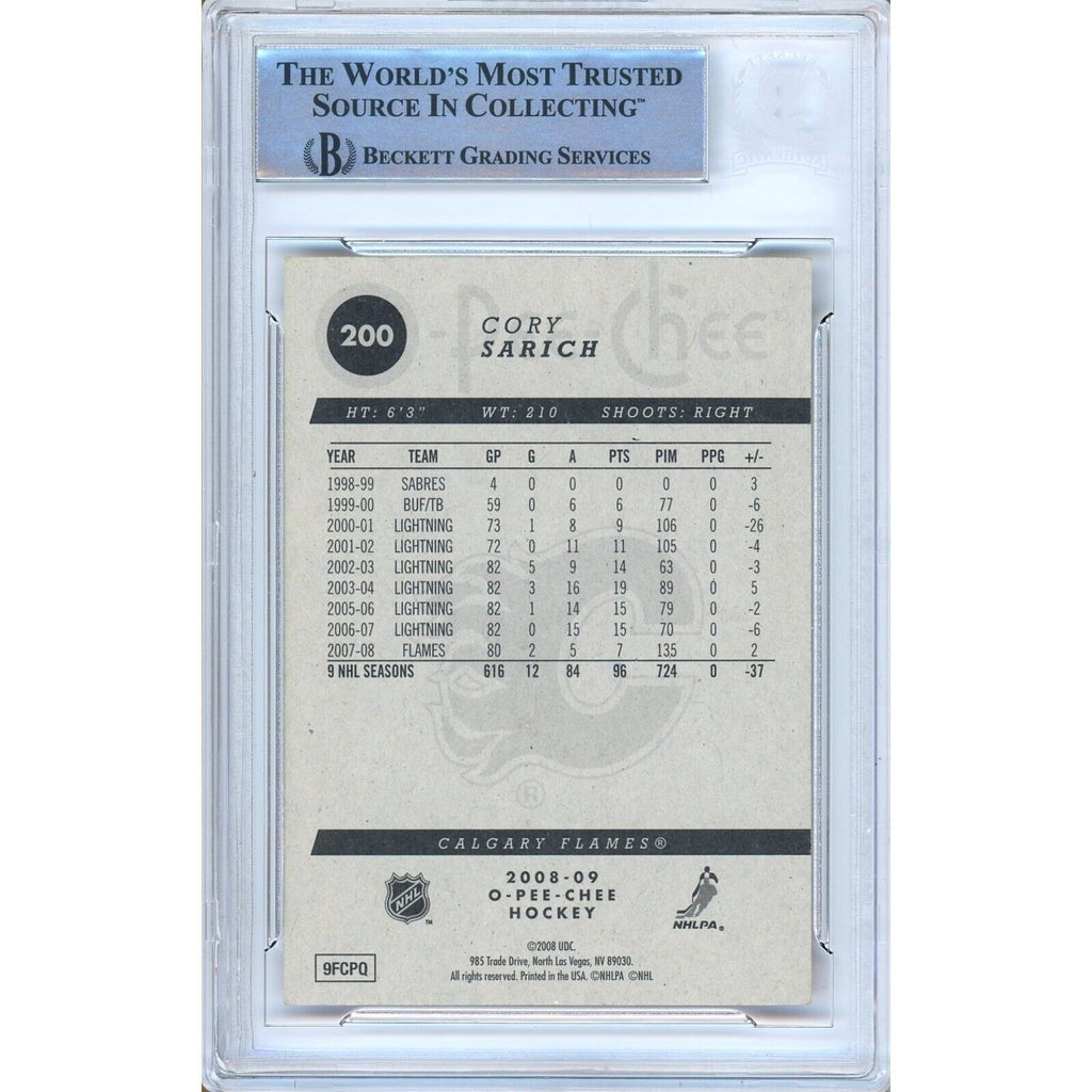 2008-09 O-Pee-Chee #200 — Cory Sarich Calgary Flames Autographed Trading Card — Beckett Authentication — authenticated by Beckett Authentication Services (BAS).