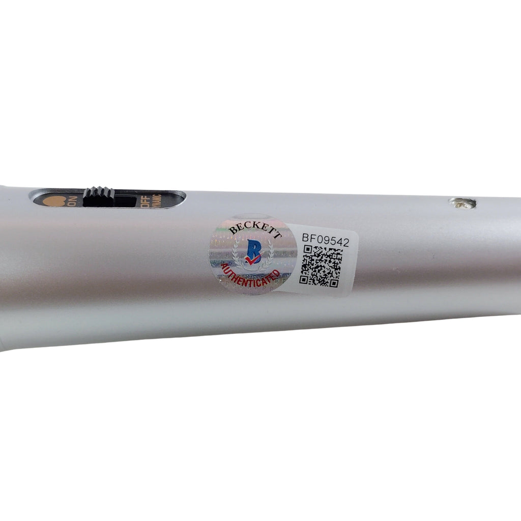 This microphone has been signed and authenticated by Beckett, with accompanying COA and proof photo for proof of authenticity. It has also been modified to make it a unique item for collectors. This music industry memorabilia is a must-have for fans of various genres, including pop, pop rock, dance pop, and freestyle. Purchase this original item with confidence and add it to your collection today. Signed in Black Sharpie and authenticated by the experts at Beckett Authentication Services, with certificate number BF09542. Please note that as of May 2022, Beckett Authentication Services will no longer issue COA cards. Instead, please scan the certification sticker and confirm authenticity and relevant information in the Beckett Authentication Database. This change will begin with certificate number sequence BF.