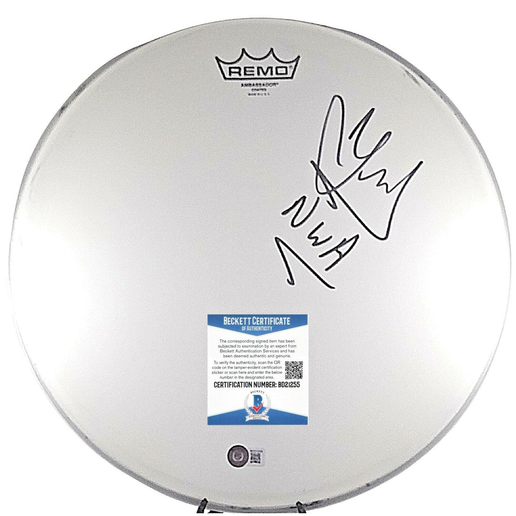 DJ Yella Autographed Drum Head with NWA Inscription — Beckett Authentication — authenticated by Beckett Authentication Services (BAS).
