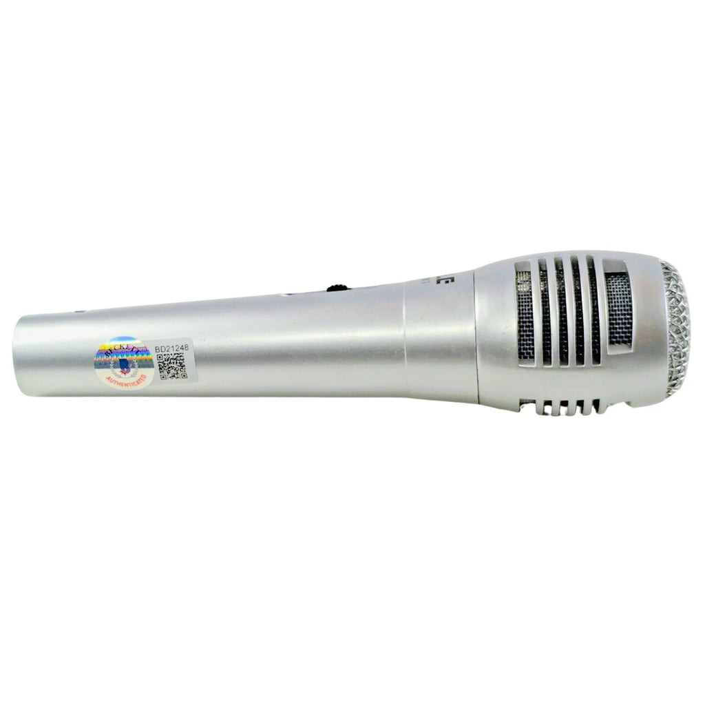 DJ Yella Autographed Microphone with 'Rock Hall' NWA Inscription — Beckett Authentication — authenticated by Beckett Authentication Services (BAS).
