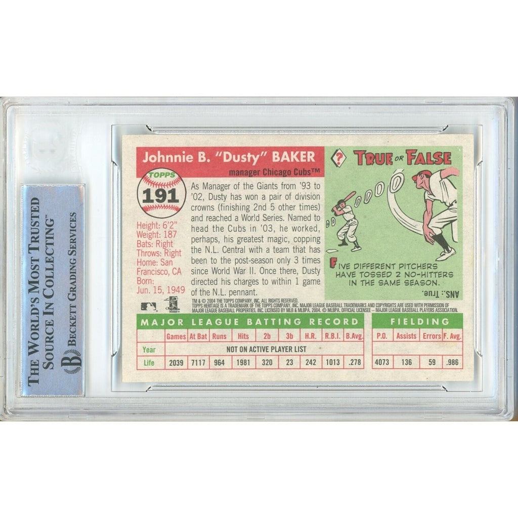 Dusty Baker Autographed 2004 Topps Heritage # 191 - Chicago Cubs - Beckett Authentication