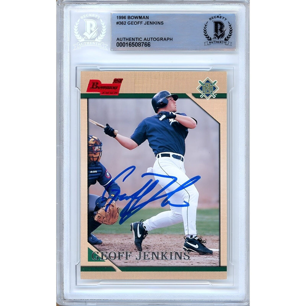 1996 Bowman #362 — Geoff Jenkins Milwaukee Brewers Autographed Trading Card — Beckett Authentication — authenticated by Beckett Authentication Services (BAS).