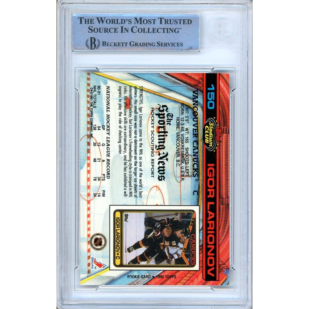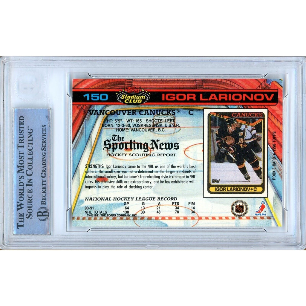 1991 Topps Stadium Club #150 — Igor Larionov Vancouver Canucks Autographed Trading Card — Beckett Authentication — authenticated by Beckett Authentication Services (BAS).