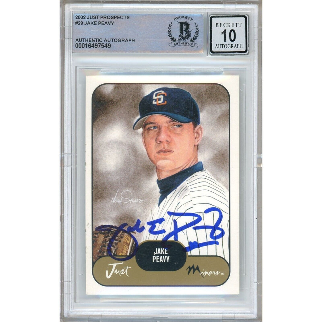 2002 Just Prospects #29 — Jake Peavy Padres Autographed Trading Card — Beckett Authentication Auto-10 Grade — authenticated by Beckett Authentication Services (BAS).