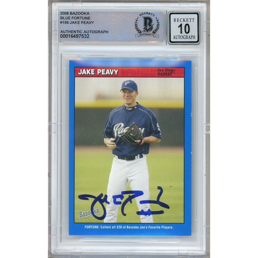2006 Bazooka Blue Fortune #156 — Jake Peavy San Diego Padres Autographed Trading Card — Beckett Authentication — authenticated by Beckett Authentication Services (BAS).