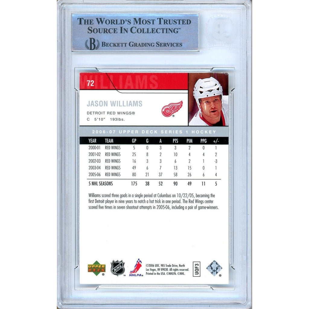 2006-07 Upper Deck # 72 — Jason Williams Detroit Red Wings Autographed Trading Card Beckett Authentication — authenticated by Beckett Authentication Services (BAS).