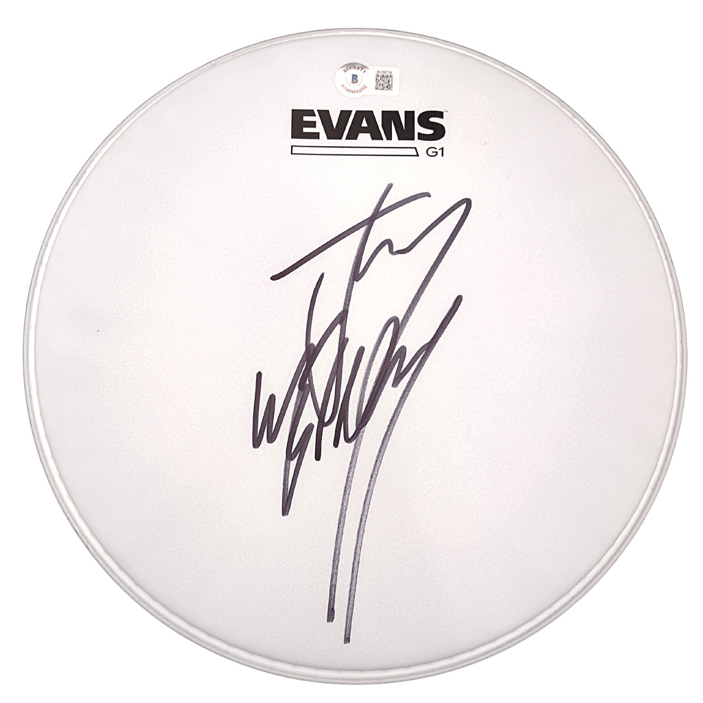 Experience the commanding presence of Jay Weinberg with this exclusive autographed 10" Evans drumhead. Hand-signed in bold black sharpie by the iconic musician himself, this collectible has undergone thorough verification by experts at Beckett Authentication Services (BAS). Simply enter the authentication number BH39719 on www.Beckett-Authentication.com to confirm its authenticity. Elevate your music collection with this genuine autographed drumhead from renowned musician Jay Weinberg. As a former drummer for Slipknot and current drummer for Suicidal Tendencies, Weinberg's talent is undeniable. Don't hesitate - add this rare piece to your collection today.