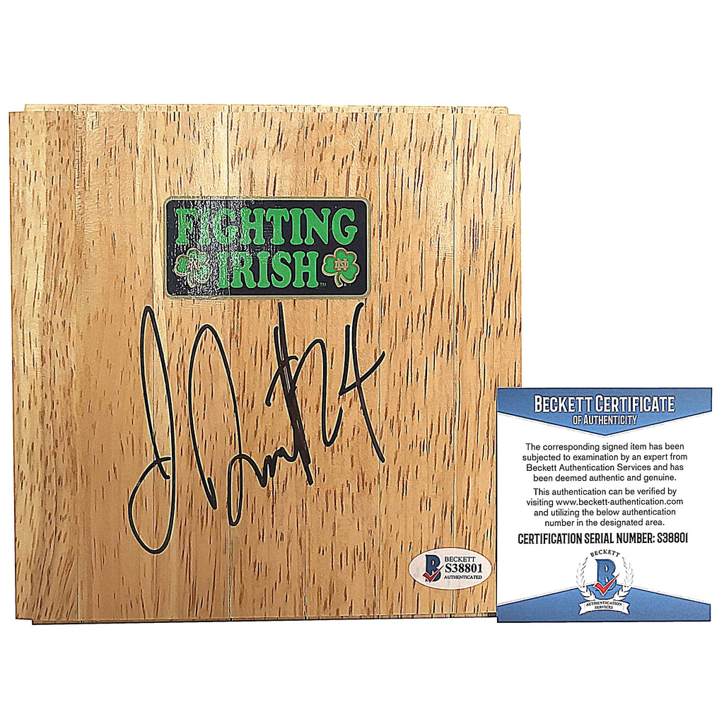 This Jewell Loyd autographed Notre Dame Fighting Irish 6x6 Inch Parquet basketball floorboard is a brand-new custom item. Jewell Loyd signed the black sharpie floorboard, which is shown in the included proof photo. Beckett Authentication Services (BAS) has examined and certified this signature as authentic. It can be verified on www.Beckett-Authentication.com using the authentication number S38801. Please click on images to enlarge and visit our website for more WNBA and NCAA basketball autographed collectibles. Notable career achievements include being named the 2015 WNBA Rookie of the Year, the 2015 #1 overall draft pick, and 2-Time NCAA Consensus All-American Selection. Currently, Loyd plays professional basketball for the Seattle Storm of the WNBA.