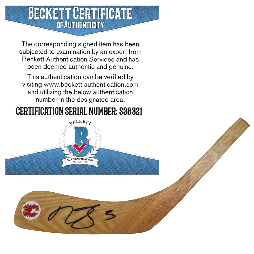 This Mark Giordano autographed Calgary Flames logo hockey stick blade is a brand-new custom piece. Not only is there a photo of Mark Giordano signing this exact stick blade, but it has also been examined and certified authentic by an expert from Beckett Authentication Services (BAS), with an authentication number of S38321. To verify this authentication, visit www.Beckett-Authentication.com. Check out our selection of NHL & Olympics autographed collectibles, including this stick blade that represents Giordano's impressive NHL career, including 3 All Star game selections in 2015, 2016, and 2020.
