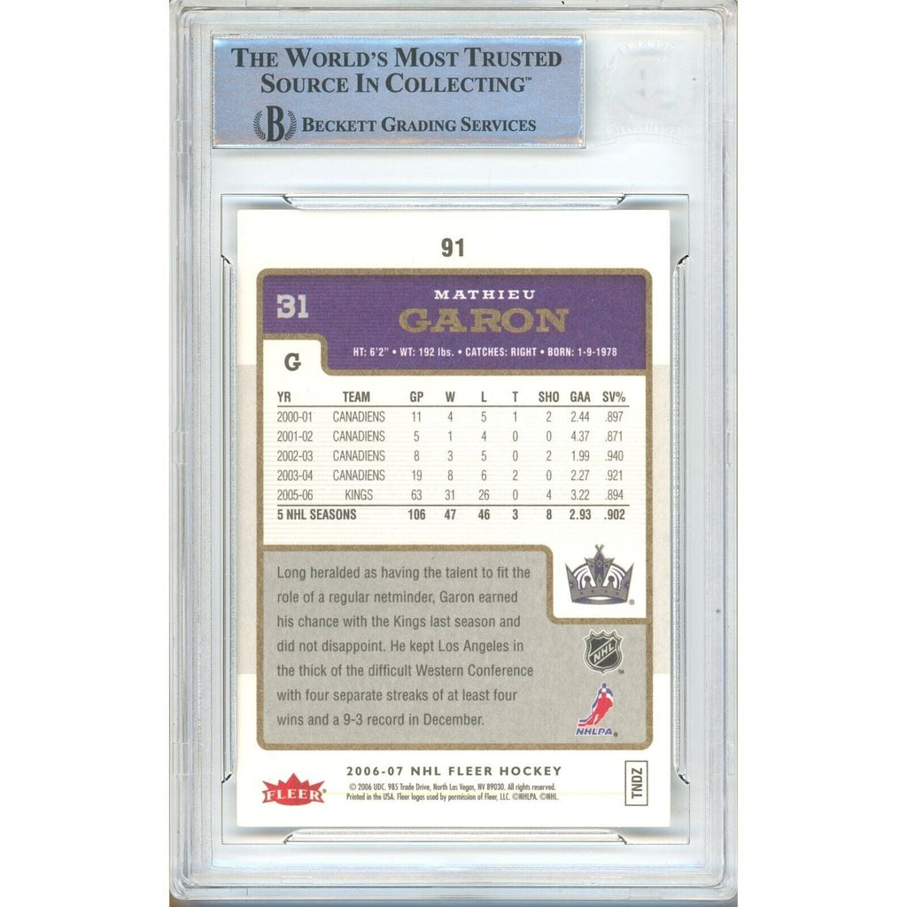 Mathieu Garon Autographed 2006 - 07 Fleer # 91 - Los Angeles Kings - Beckett Authentication