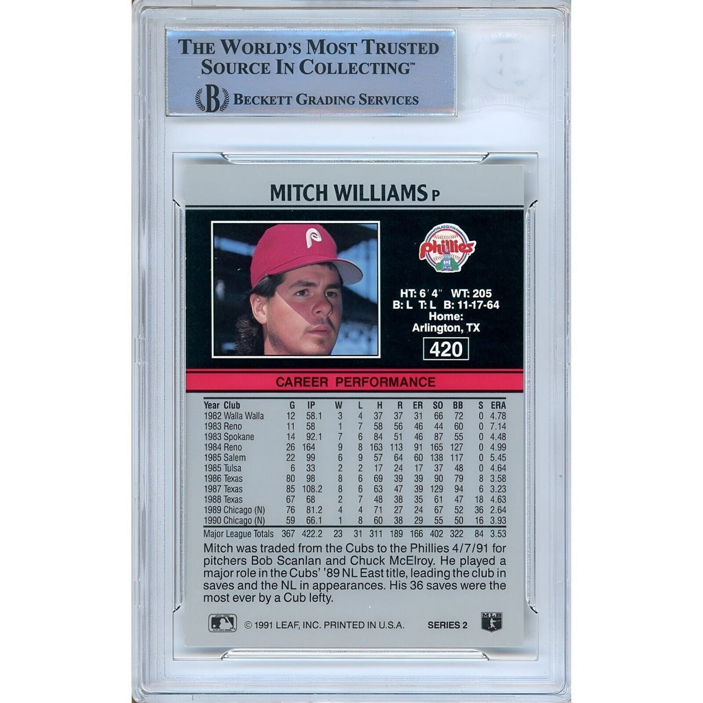 Mitch Williams Philadelphia Phillies Autographed 1991 Leaf Baseball Authentic Trading Card Slabbed — Beckett Authentication