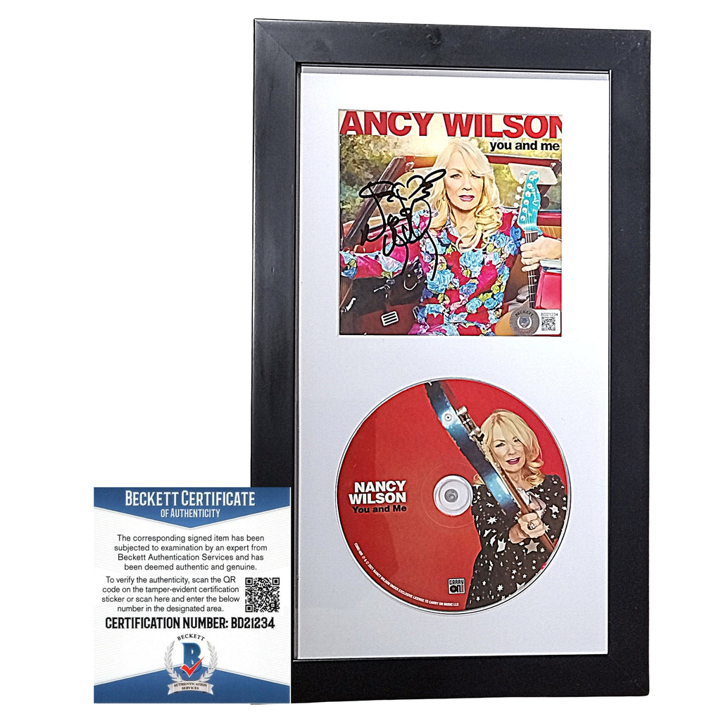 This is a brand-new framed Nancy Wilson autographed 'You and Me' CD Cover Insert, which also includes the Compact Disc. The signature, signed in black sharpie, has been verified as authentic and genuine by an expert from Beckett Authentication Services (BAS). To confirm this authentication, visit www.Beckett-Authentication.com and enter the authentication number BD21234. Click on images to enlarge and browse our website for more Hollywood and celebrity autographed collectibles.