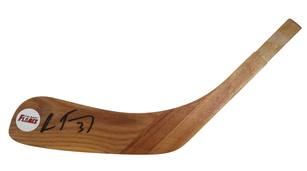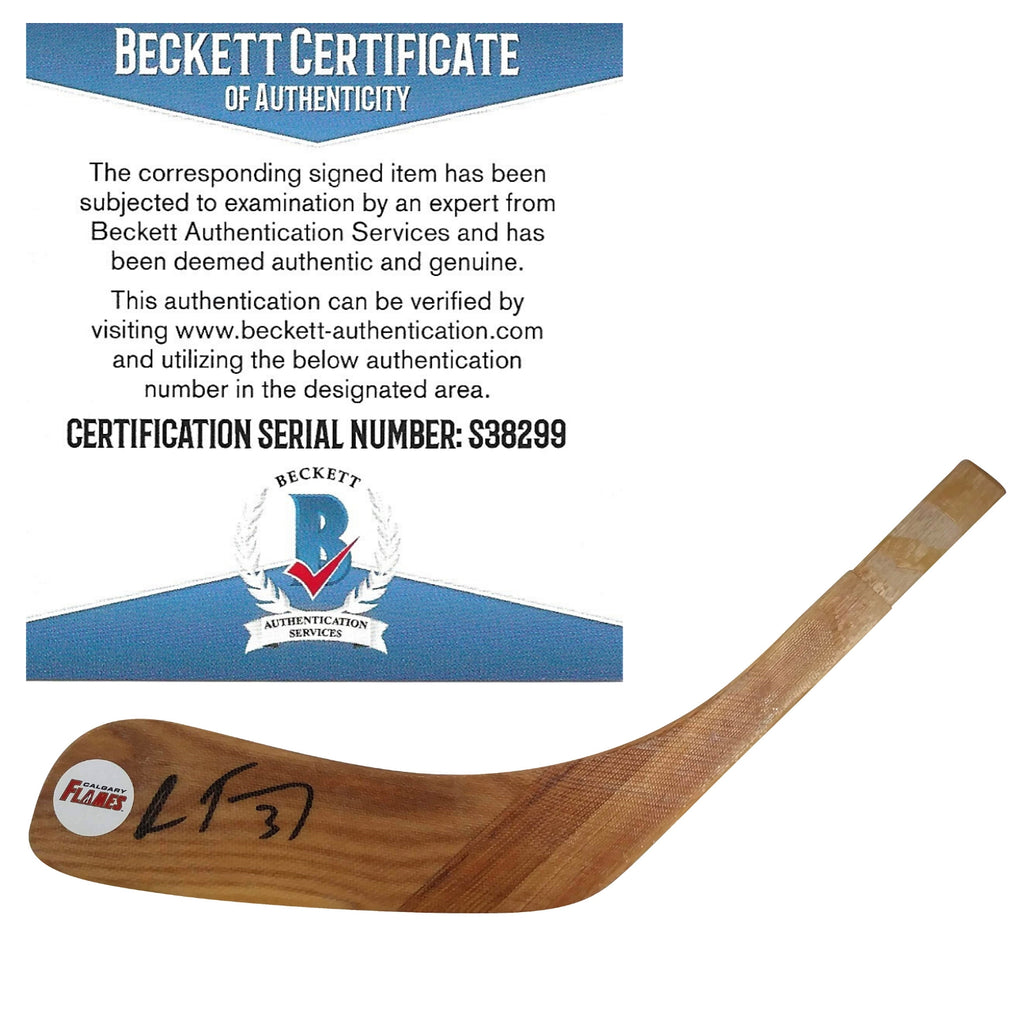This is a custom hockey stick blade featuring the autograph of Oscar Fantenberg, a renowned player for the Calgary Flames. Fantenberg signed the blade using a black sharpie, and we have included a free proof photo of him signing this exact blade. The authenticity of this blade has been examined and certified by an expert from Beckett Authentication Services (BAS), and the authentication number S38299 can be verified on their website, www.Beckett-Authentication.com. Please click on the images to enlarge them and feel free to explore our website for other NHL and Olympics autographed collectibles.