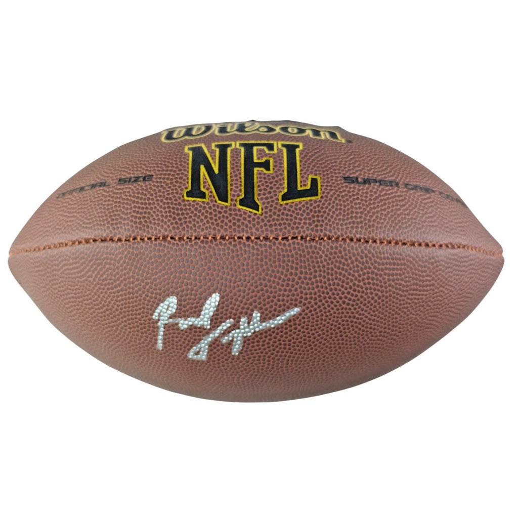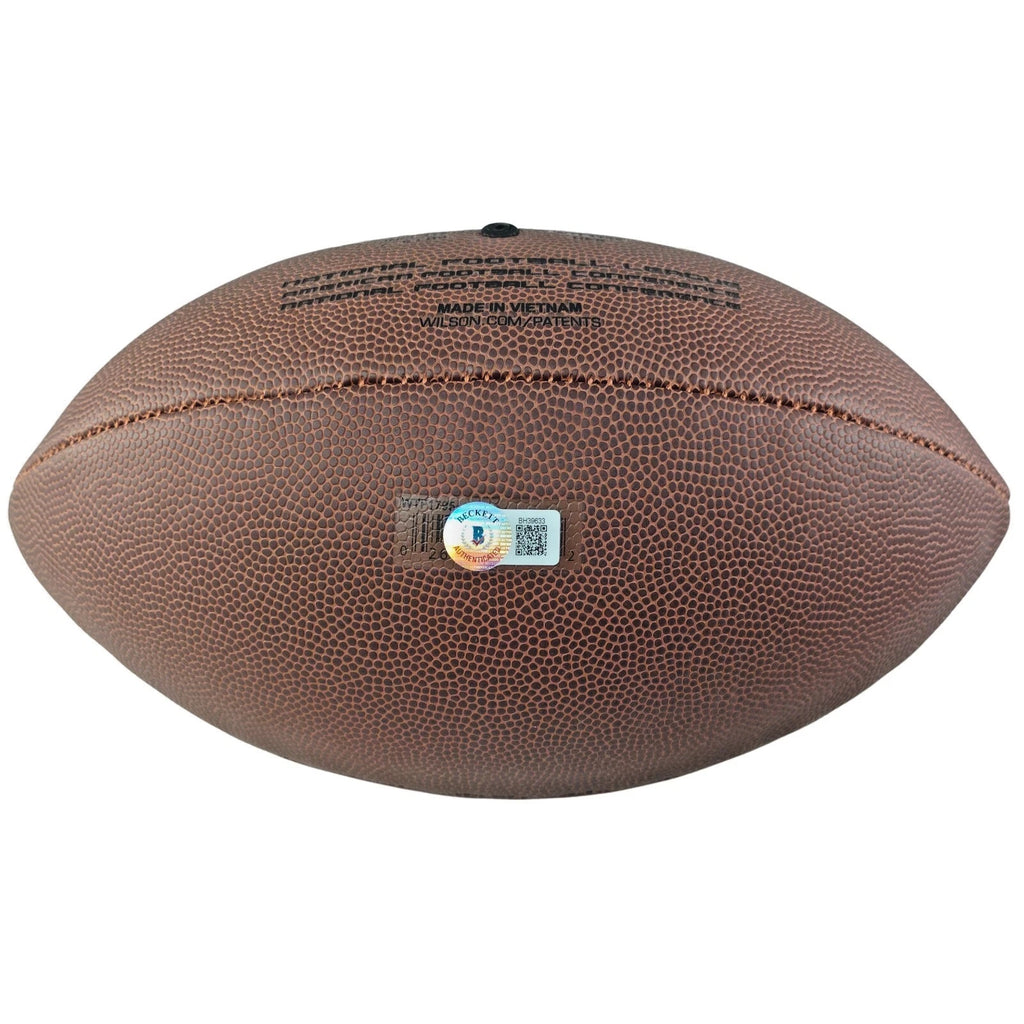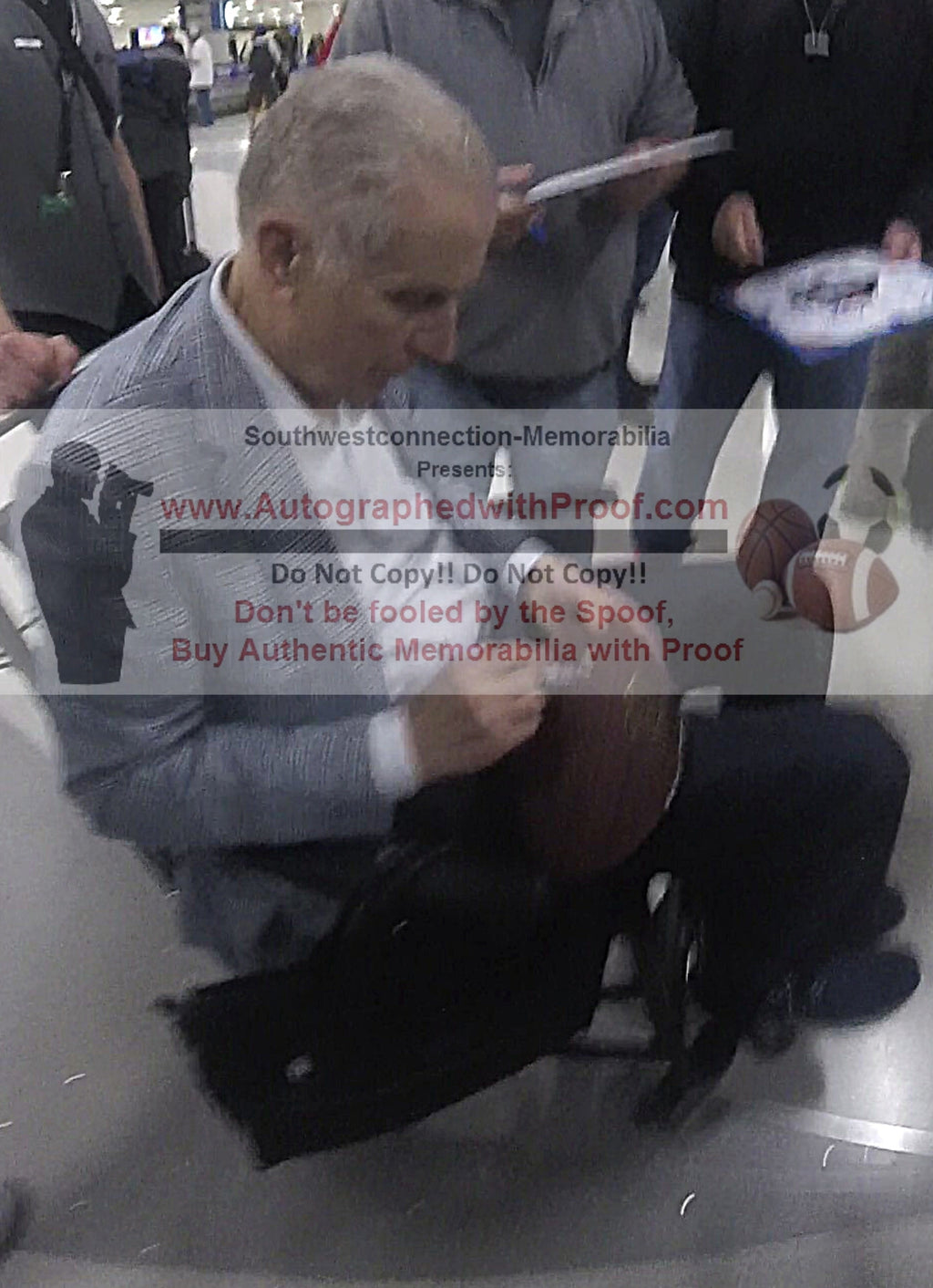 This one-of-a-kind football is autographed by former NFL commissioner Paul Tagliabue. The autograph has been authenticated by Beckett Authentication Services (BAS) and comes with a certificate of authenticity (COA) as proof. Made of composite leather with a super grip for optimal play, this football is a must-have for fans who admire Tagliabue's leadership and legacy. It's a rare and unique addition to any collection, offering a piece of NFL history. The autograph was signed in silver paint pen and the ball is an official size NFL Wilson composite with super grip. A 4x6 proof photograph of Tagliabue signing this exact football for Southwestconnection-Memorabilia will be included free with purchase, as shown. The experts at Beckett Authentication Services have authenticated this signature, with certificate number BH39633.