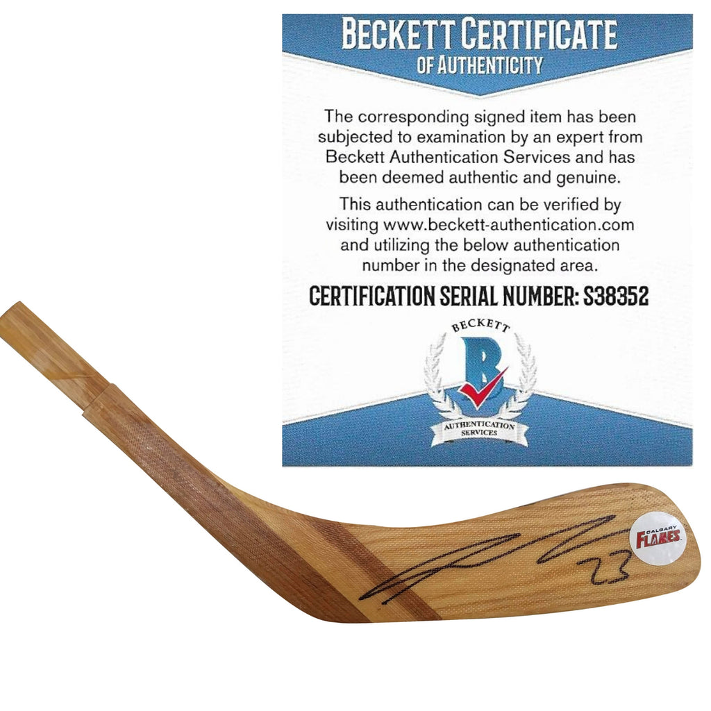 This Sean Monahan signed Calgary Flames hockey stick blade is a custom, featuring the team logo. Sean Monahan used a black sharpie to sign the blade, as seen in the included proof photo. Rest assured, this product has been examined and certified as authentic by an expert from Beckett Authentication Services (BAS). You can verify its authenticity by visiting www.Beckett-Authentication.com and entering the authentication number S38352. Be sure to click on images to enlarge and browse our website for more autographed collectibles, including those from the NHL and Olympics.