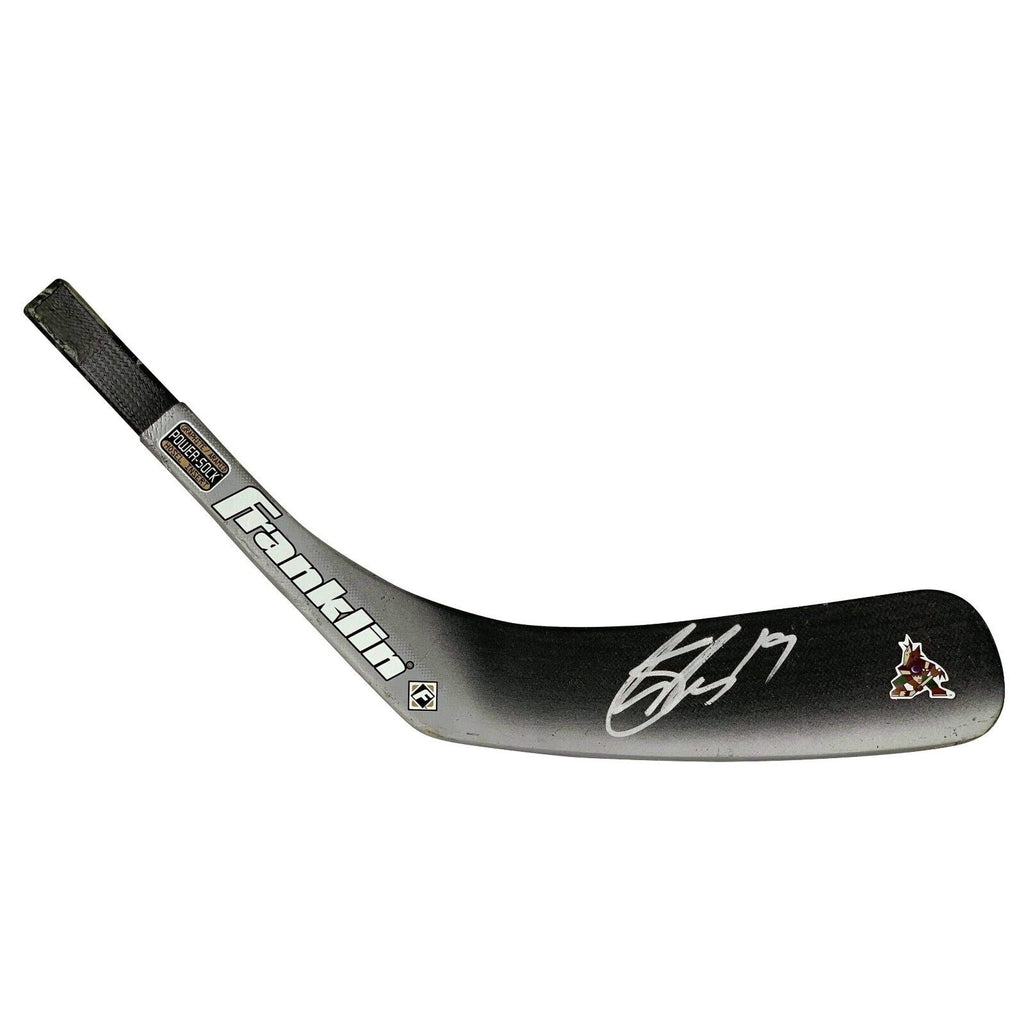Enhance your collection with this autographed Shane Doan Arizona Coyotes hockey stick blade, complete with authentication from Beckett Authentication Services (BAS) and a certificate of authenticity (COA). With its excellent condition and unique Phoenix Coyotes logo, this is a rare and original piece that will make a great addition to any home or office display. Don't miss out on the chance to own a valuable item signed by a hockey legend. This autograph has been verified by the experts at BAS with certificate number S38371 and signed in silver paint pen. Brand/model: Customized Ice Hockey Stick Blade Replacement.