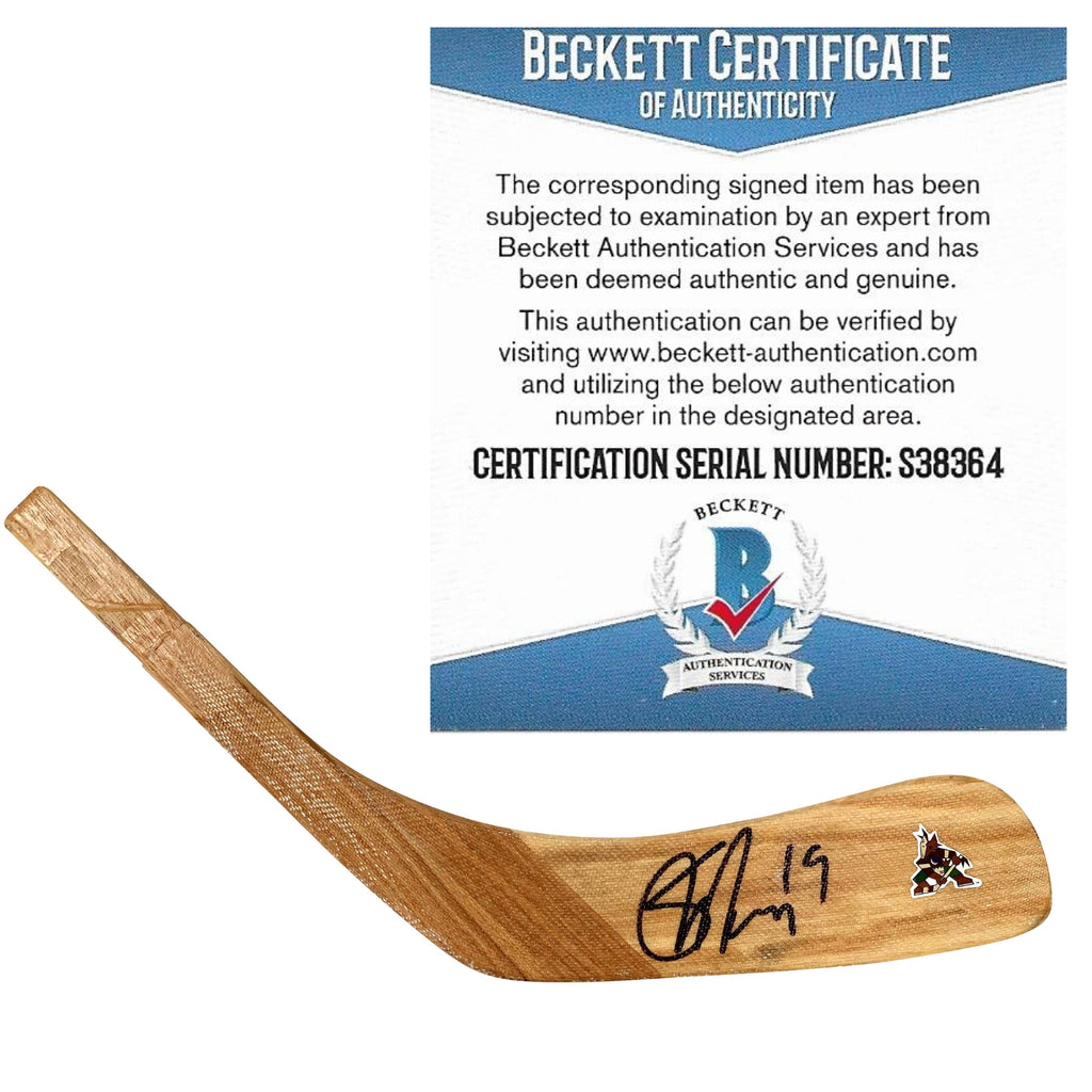 This Shane Doan autographed Arizona Coyotes hockey stick blade is a one-of-a-kind item. Doan signed the blade with black sharpie and we have a photo of him signing the exact blade for us. This blade has been verified authentic by an expert from Beckett Authentication Services (BAS) with verification available on their website using authentication number S38364. A proof photo is included with your purchase, and you can also browse our website for other NHL and Olympics autographed collectibles. Doan is a 2-time NHL All-Star Game Selection (2004 and 2009) and has numerous other notable career accomplishments.