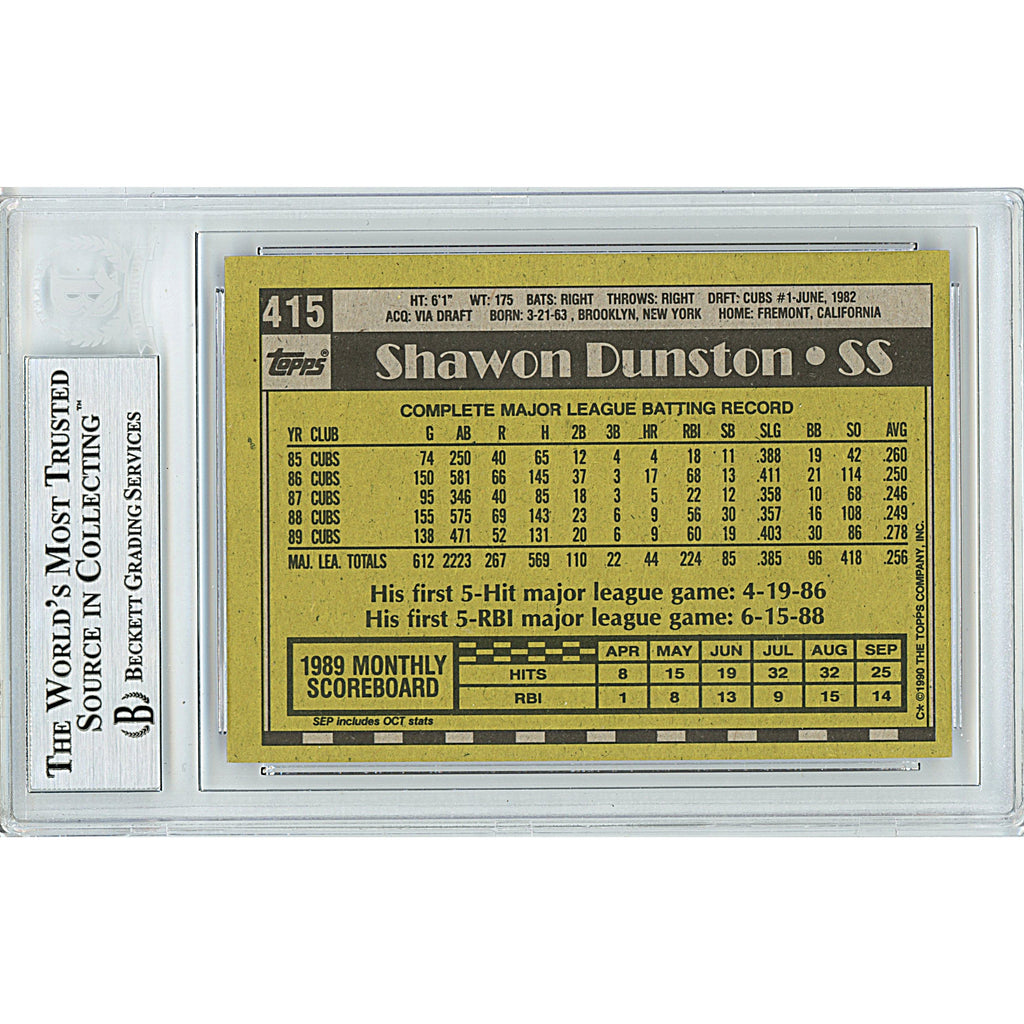 Shawon Dunston Autographed 1990 Topps # 415 - Chicago Cubs - Beckett Authentication