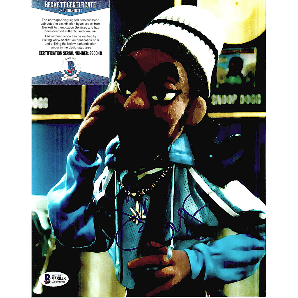 This Snoop Doggy Dogg autographed Crank Yankers glossy 8x10 photo is a valuable addition to any fan's collection. With a signature in blue sharpie, this 8x10 photograph has been verified as authentic and genuine by an expert from Beckett Authentication Services (BAS). To confirm its authenticity, simply visit www.Beckett-Authentication.com and enter the authentication number S38048 in the designated area. Be sure to enlarge the images for a closer look. For more autographed collectibles in the Hollywood and music industries, browse our website. Snoop Dogg's notable career includes 17 studio albums, 7 collaboration albums, and appearances in popular films such as Training Day, The Wash, Starsky and Hutch, Soul Plane, and Mac & Devin Go To High School.